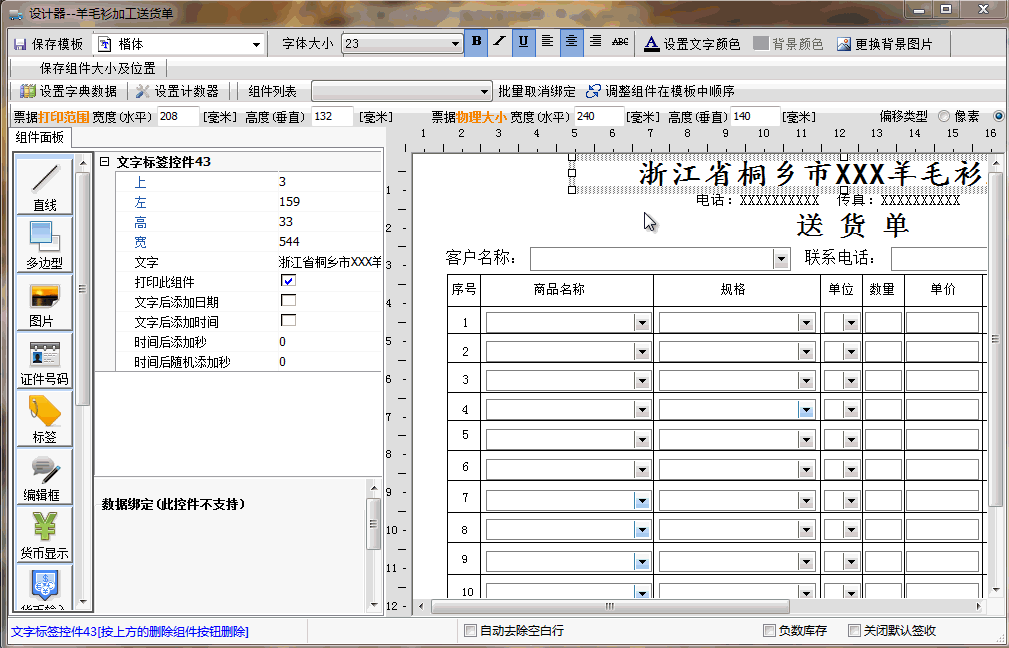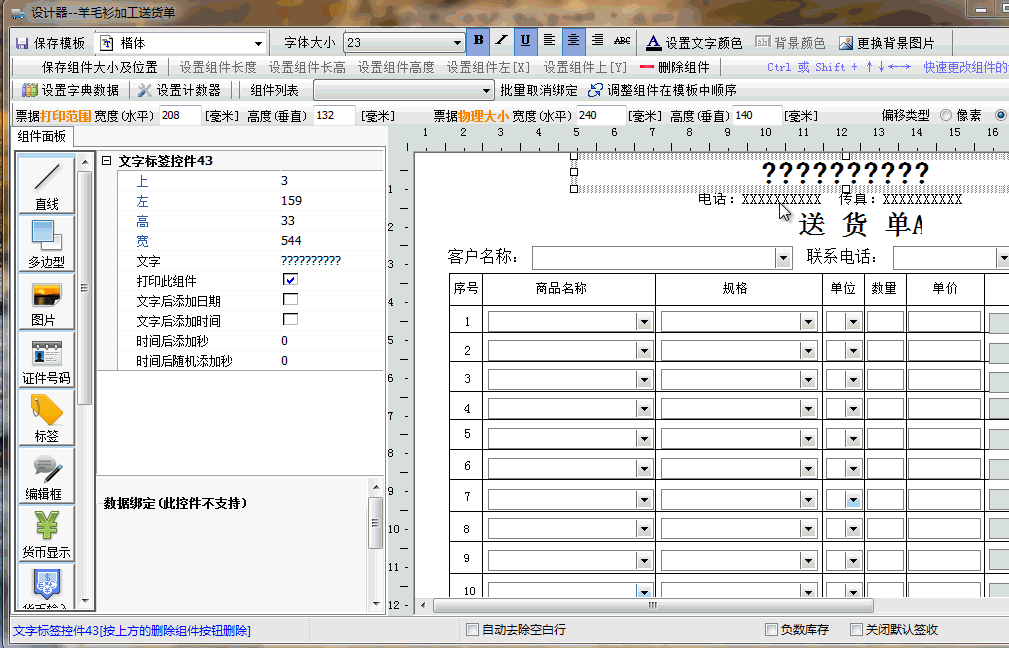如何使用设计器修改送货单模板