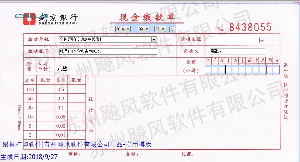 票据打印软件|支票打印软件|盛京银行现金缴款单免费下载