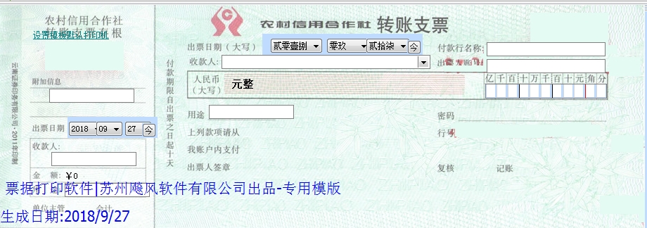 票据打印软件|支票打印软件|农村信用合作社转账支票免费下载