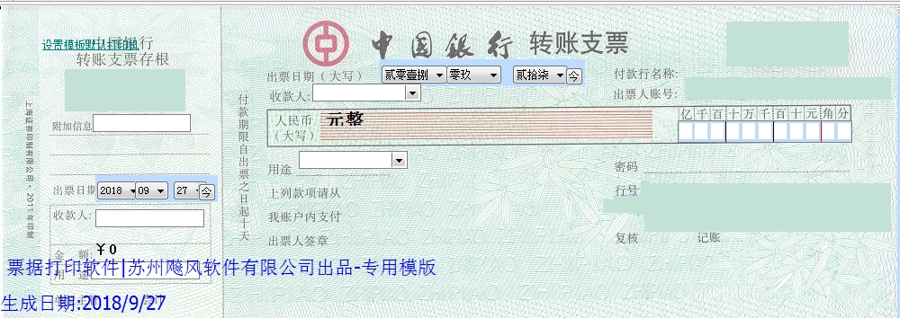 票据打印软件|支票打印软件|中国银行转账支票正面免费下载