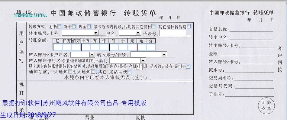票据打印软件|支票打印软件|邮政储蓄银行转账凭据免费下载