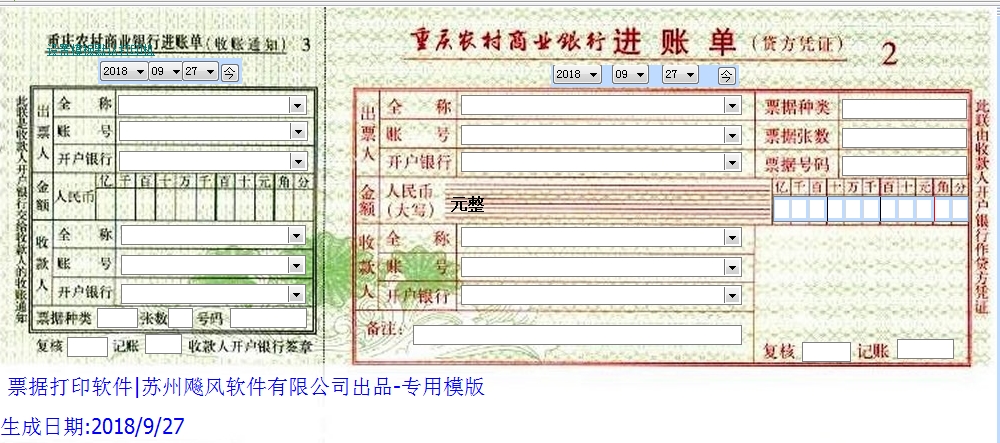 票据打印软件|支票打印软件|重庆农村商业银行农村商业银行进账单免费下载