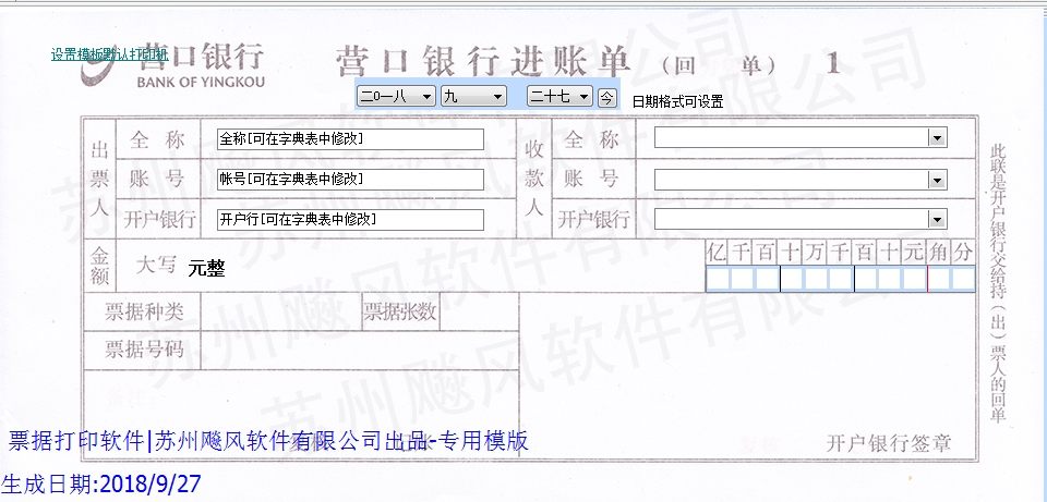 票据打印软件|支票打印软件|营口银行进帐单免费下载