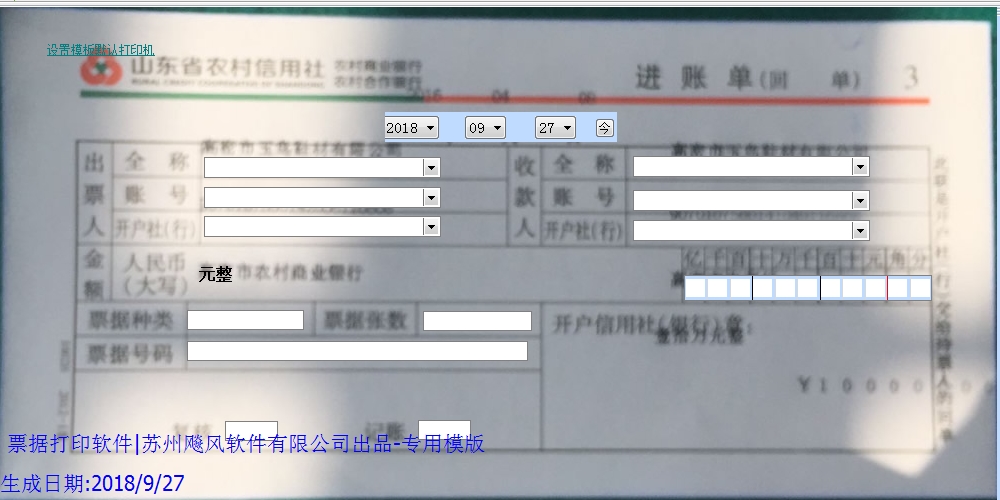 票据打印软件|支票打印软件|山东农村信用社进账单免费下载