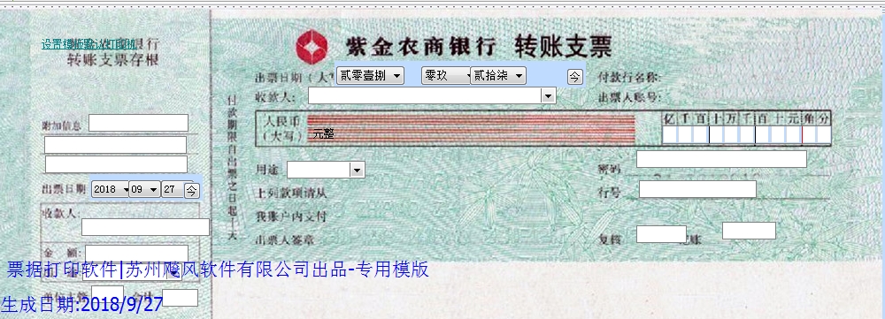 票据打印软件|支票打印软件|紫金农商银行转帐支票免费下载