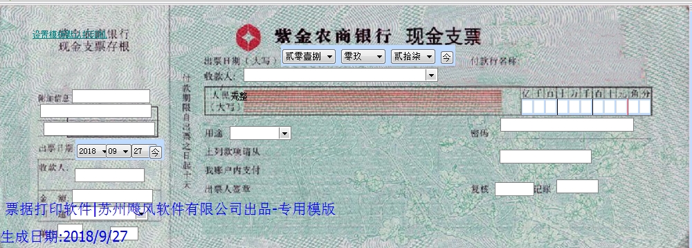 票据打印软件|支票打印软件|紫金农商银行现金支票免费下载