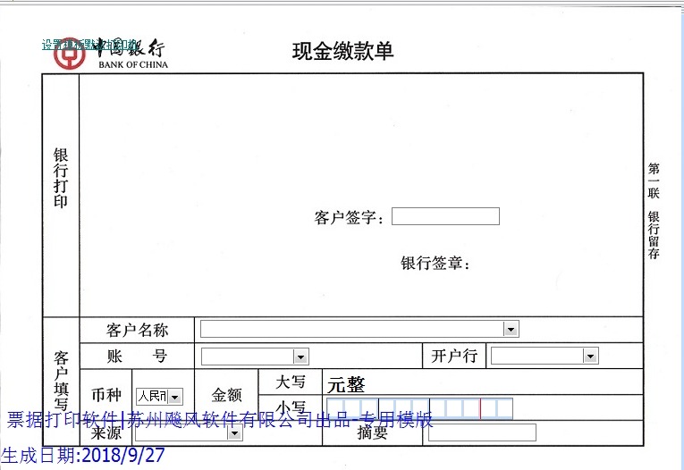 票据打印软件|支票打印软件|中国银行现金缴款单免费下载