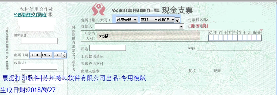 票据打印软件|支票打印软件|农村信用合作社现金支票免费下载