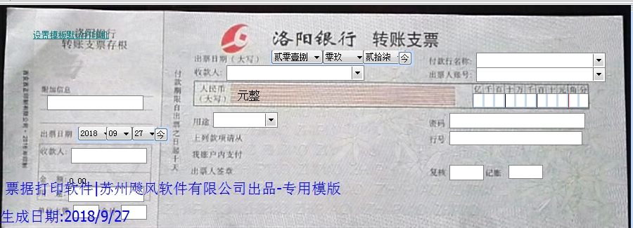 票据打印软件|支票打印软件|洛阳银行转帐支票免费下载