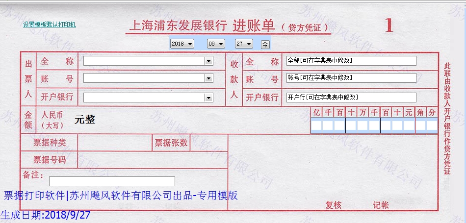 票据打印软件|支票打印软件|上海浦东发展银行进账单免费下载