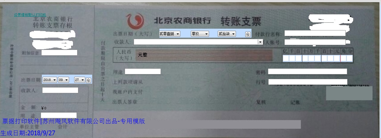 票据打印软件|支票打印软件|北京农商银行转账支票免费下载