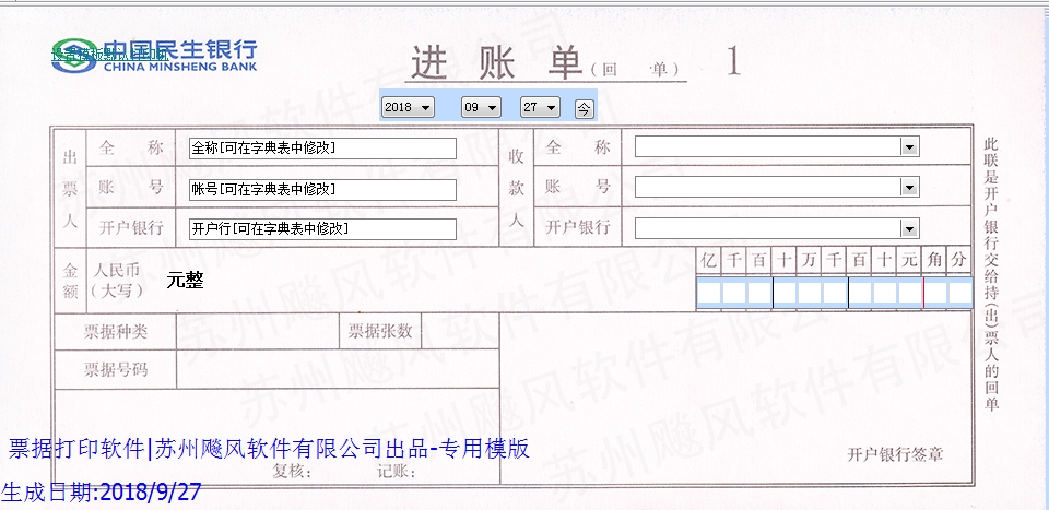 票据打印软件|支票打印软件|民生银行进帐单免费下载