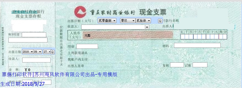 票据打印软件|支票打印软件|重庆农村商业银行现金支票免费下载