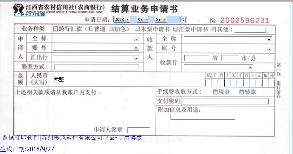 票据打印软件|支票打印软件|江西农村信用社结算业务申请书免费下载