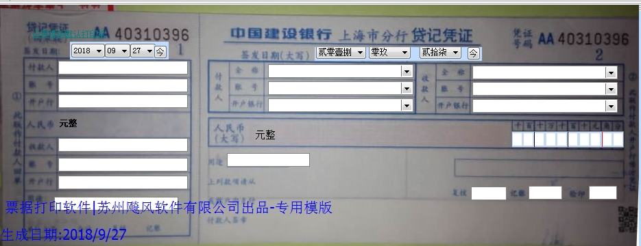 票据打印软件|支票打印软件|建设银行-上海分行贷记凭证免费下载
