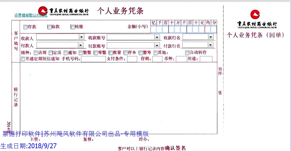 票据打印软件|支票打印软件|重庆农村商业银行个人业务委托书免费下载