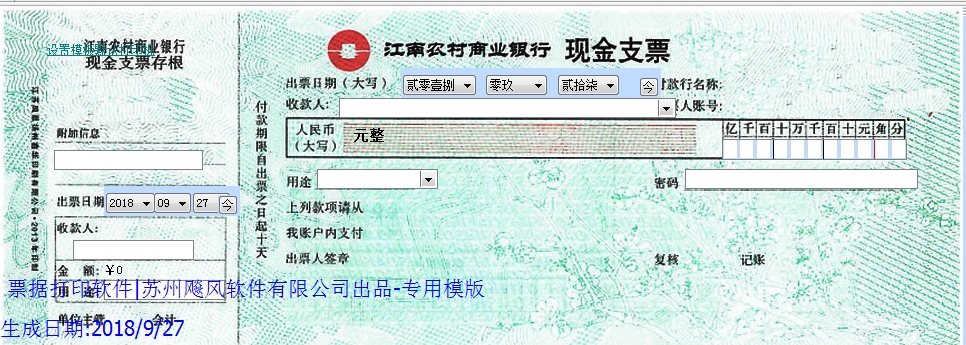 票据打印软件|支票打印软件|江南农村商业银行现金支票免费下载